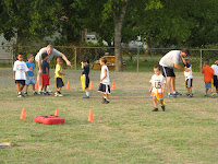 Daniel trying to get the kids somewhat organized during the game. Is it just me, or does #88 on the other team seem a little big?