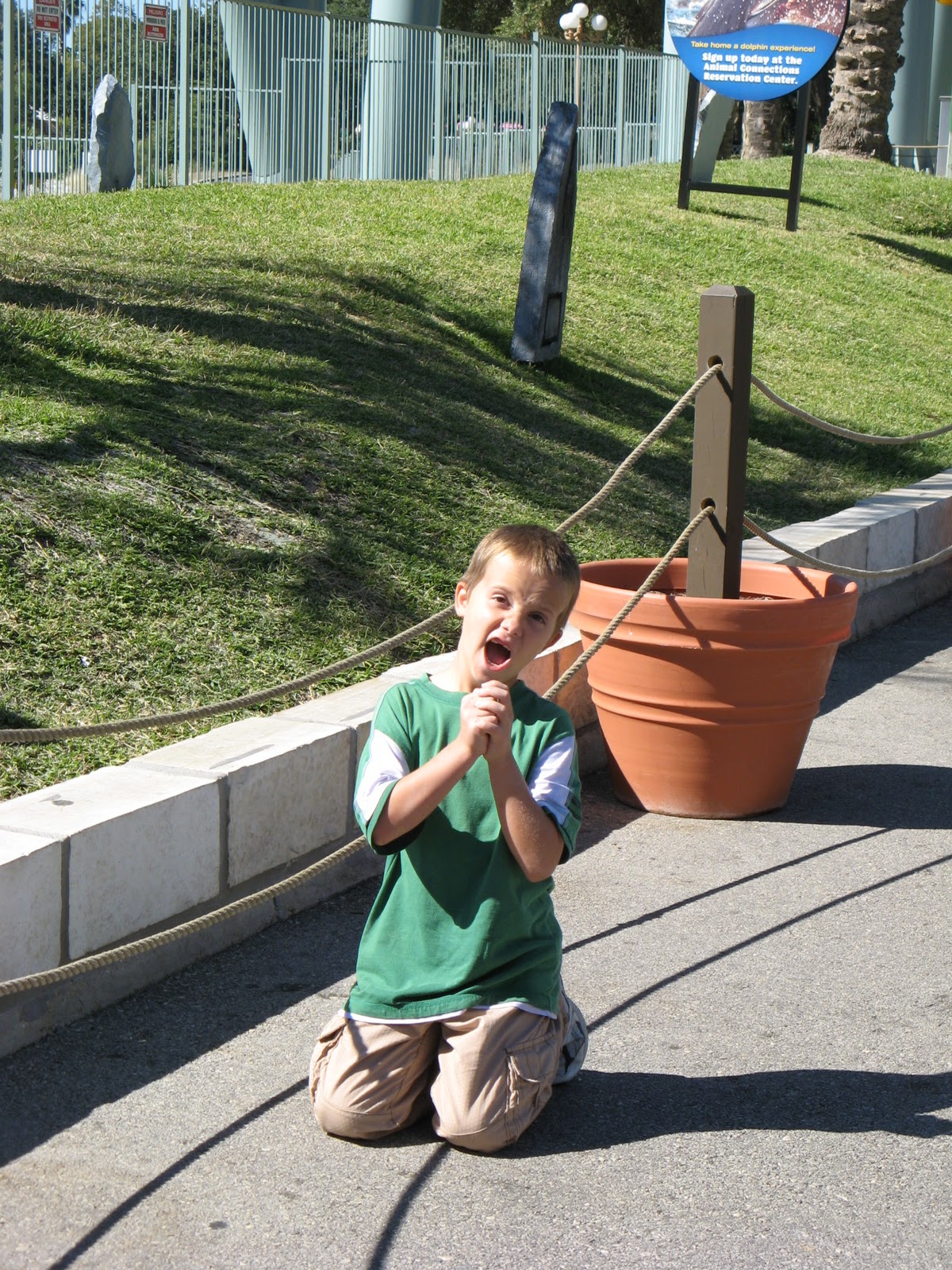 After that we went to the Shamu show.The older kids really wanted to sit down in the splash zone. After I warned them that it would be cold and salty water, Tristan thought better of it and moved back a few rows, but Ollie and Rachel insisted on staying. They got soaked!