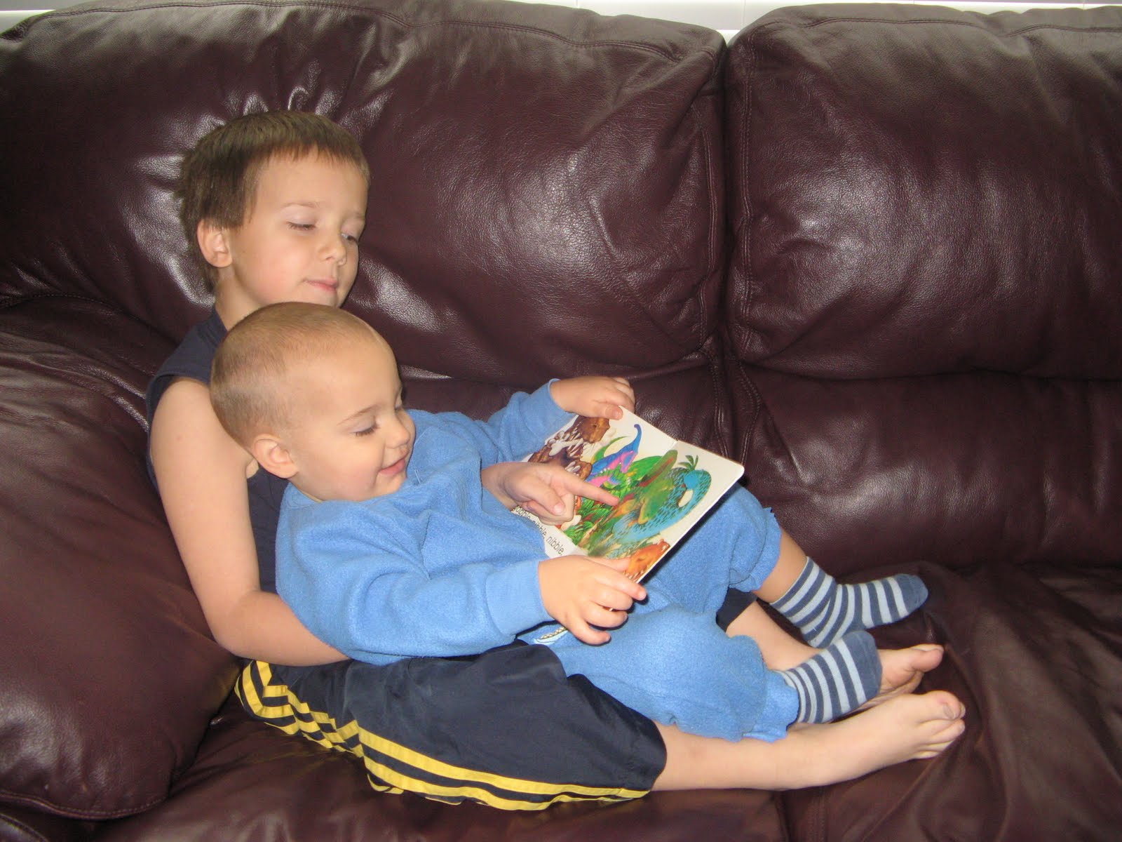 Oliver reading to Henry. Henry loves being read to! Once again, it's nice to have such nice older siblings.