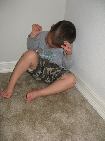 Henry still takes great naps every day after lunch. He usually falls asleep pretty quickly, but I guess one day after I put him to bed he was wandering around his room and fell asleep in the corner. I was pretty shocked when I went to check on him and he wasn’t in his bed, and even more surprised to find him in this position behind the door.