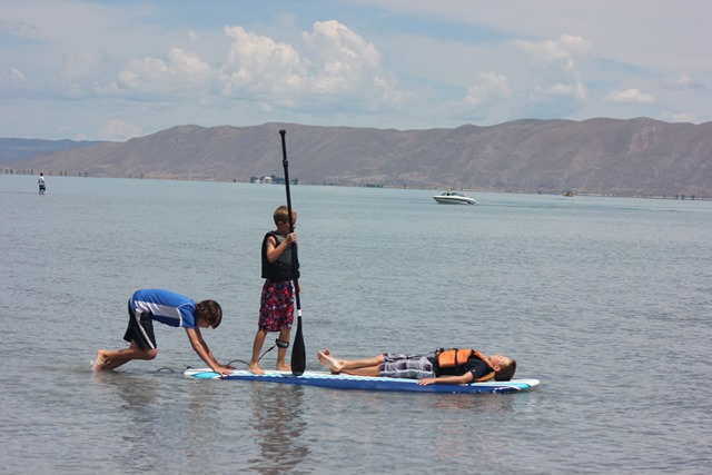 When we weren’t hanging out at the lodge, we were down at the beach. Bear Lake is great for big groups with lots of little kids. The water stays shallow forever and ever. Perfect for doing so many things: